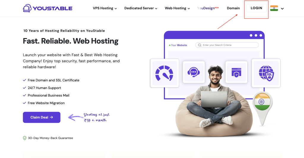 Step 1 – Go to google chrome >> Search www.youstable.com >> Go to the official website of YouStable